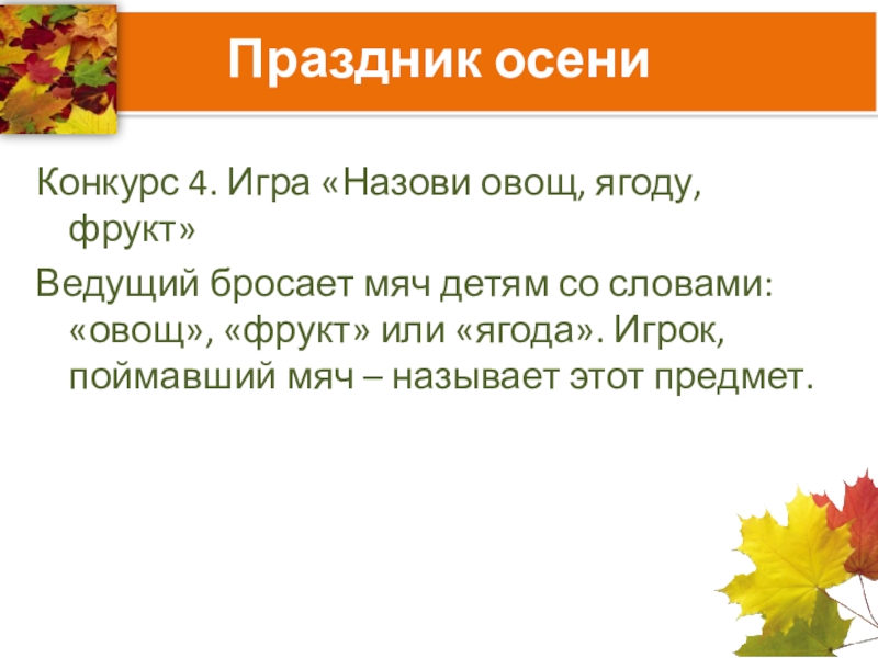 Конкурс 4. Игра «Назови овощ, ягоду, фрукт»