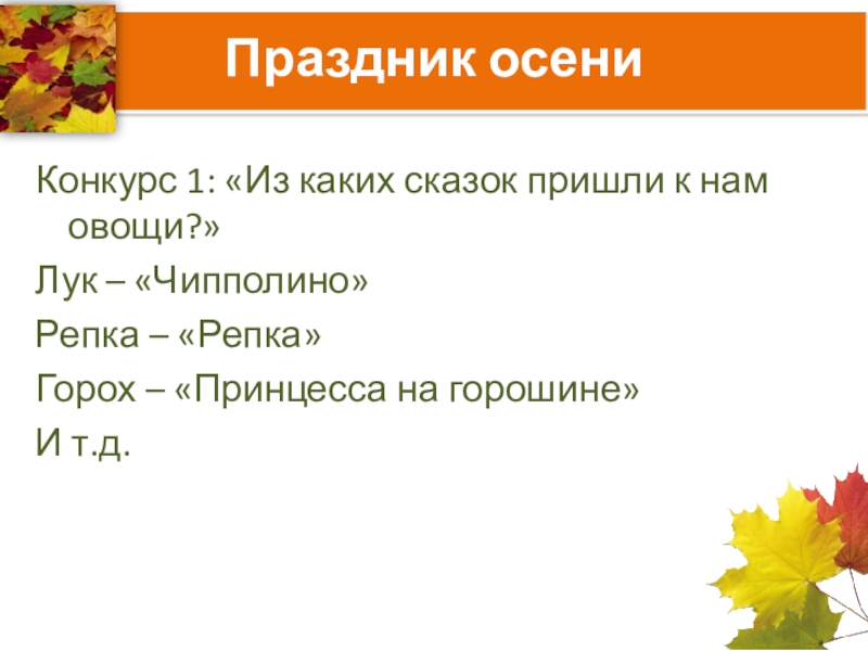 Конкурс 1: «Из каких сказок пришли к нам овощи?»