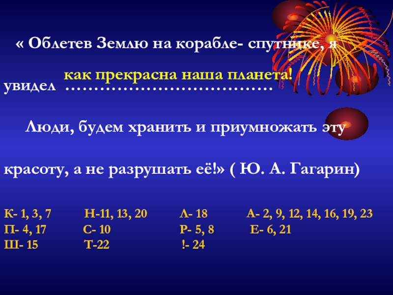 К- 1, 3, 7 Н-11, 13, 20 Л- 18 А- 2, 9, 12, 14, 16, 19, 23
