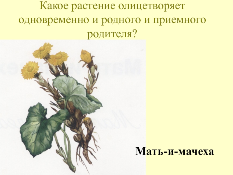 Слайд 40Какое растение олицетворяет одновременно и родного и приемного родителя?