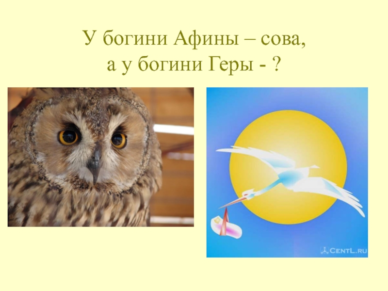 Слайд 46У богини Афины – сова,