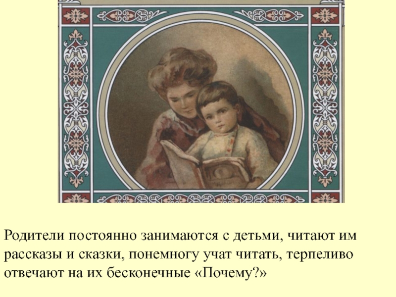 Слайд 11Родители постоянно занимаются с детьми, читают им рассказы и сказки, понемногу