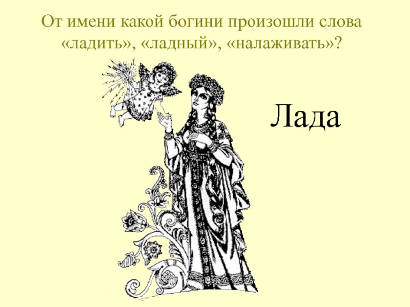 Слайд 49От имени какой богини произошли слова «ладить», «ладный», «налаживать»?