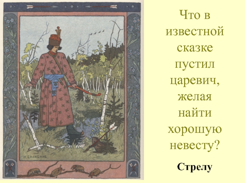 Слайд 43Что в известной сказке пустил царевич, желая найти хорошую невесту?