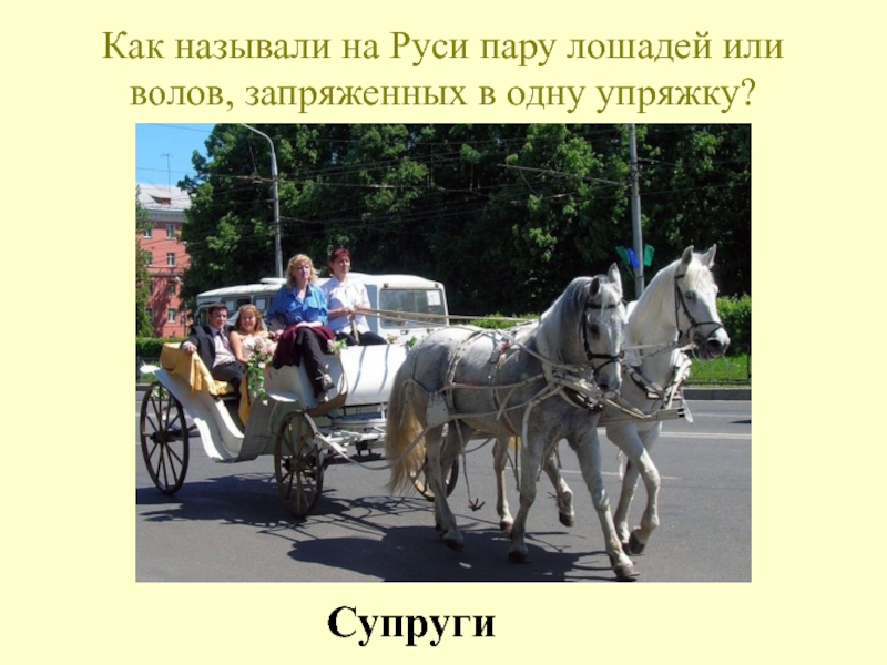 Слайд 47Как называли на Руси пару лошадей или волов, запряженных в одну