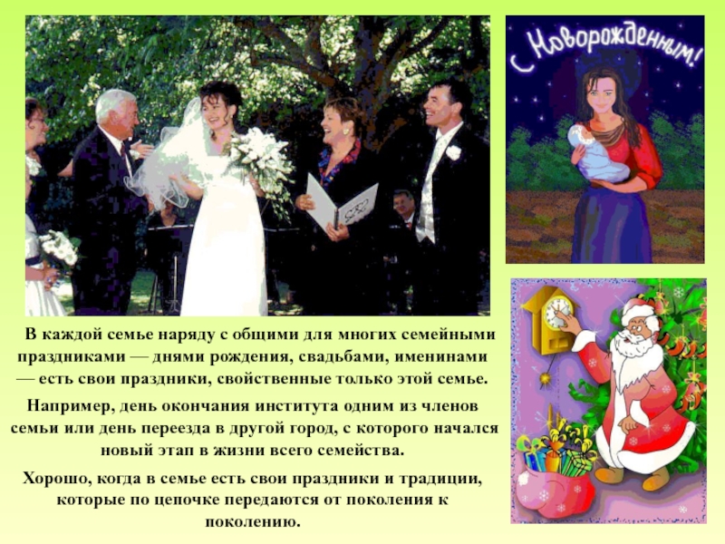 праздниками — днями рождения, свадьбами, именинами — есть свои праздники, свойственные только этой семье.