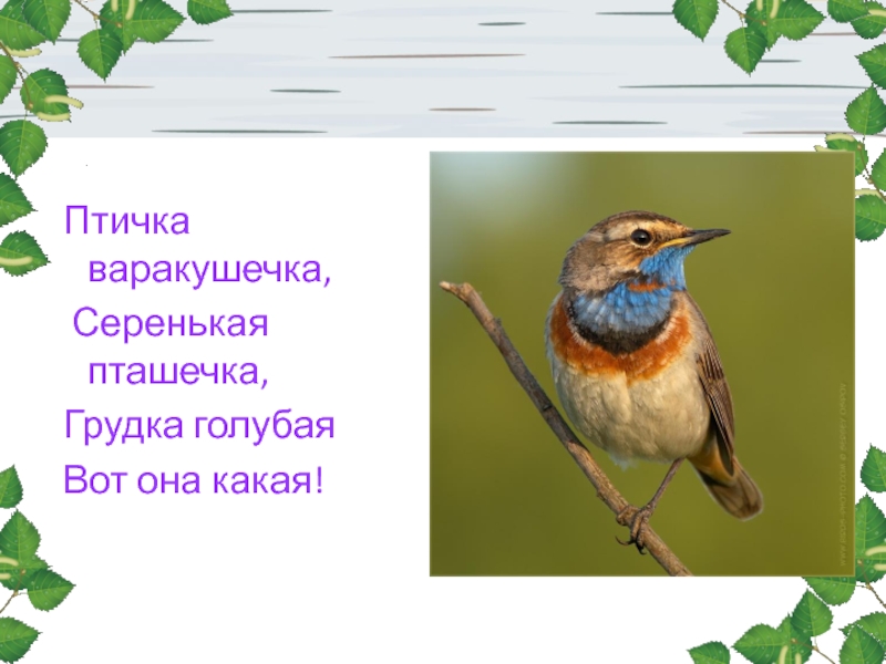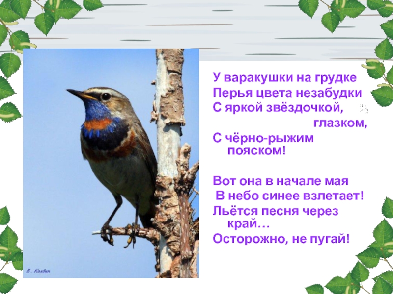 У варакушки на грудкеПерья цвета незабудкиС яркой звёздочкой,