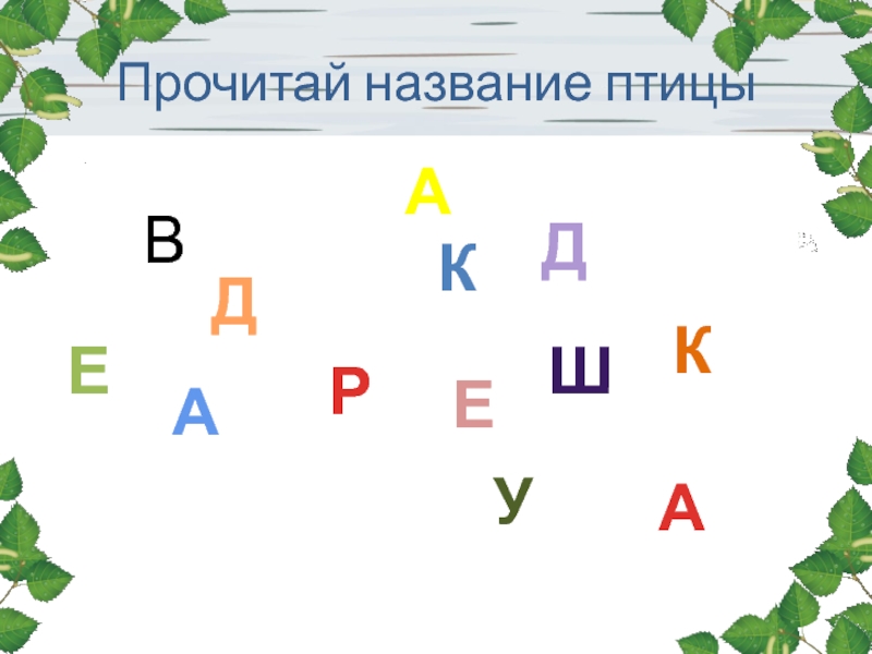 Прочитай название птицы АЕВРДКДЕУШКАА