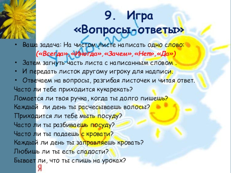 Отвечаем на вопросы, разгибая листочек и читая ответ.