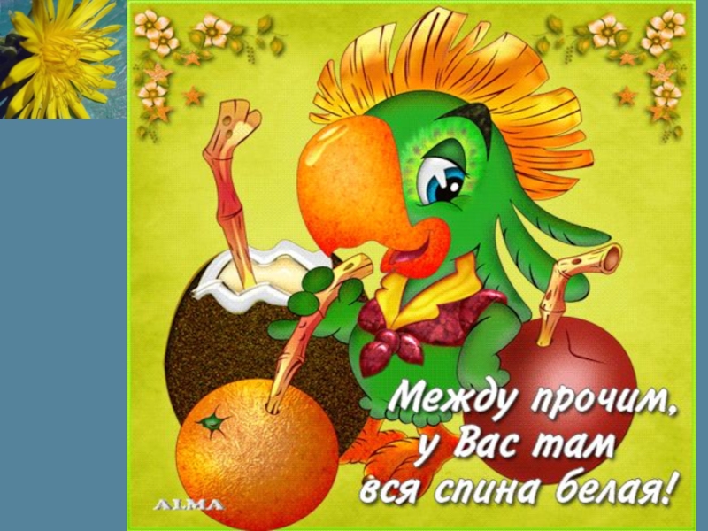 Например. «Прилетели птицы: голуби, синицы, чайки, макароны…..»