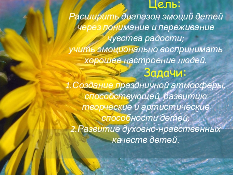 1.Создание праздничной атмосферы, способствующей развитию творческие и артистические способности детей;