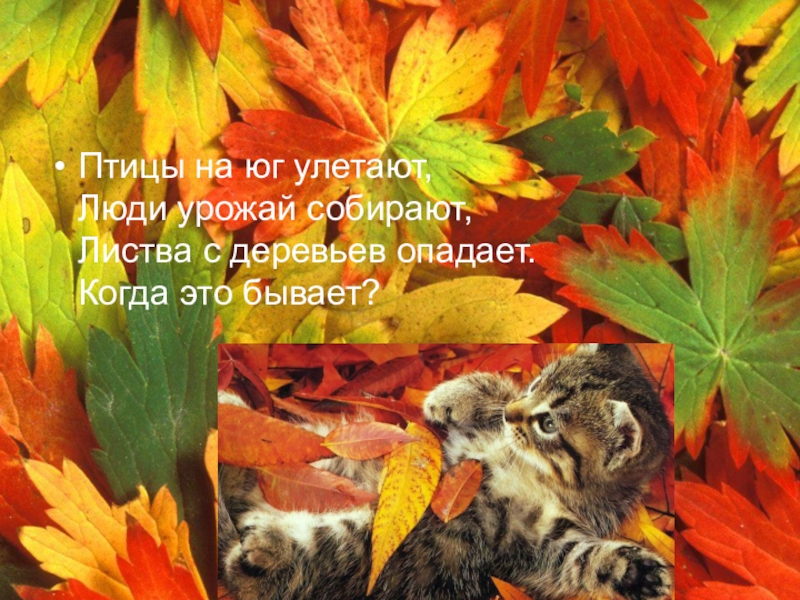 Птицы на юг улетают, Люди урожай собирают, Листва с деревьев опадает. Когда это бывает?