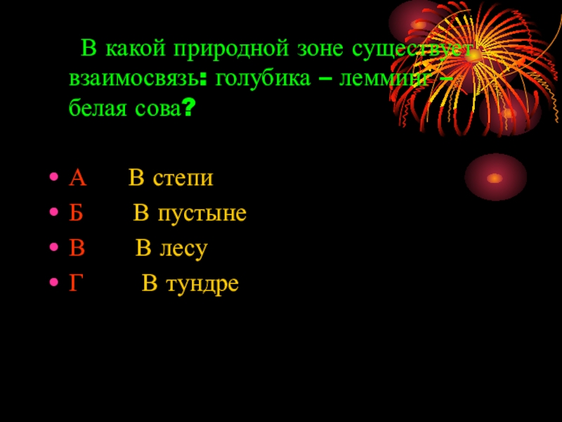 Слайд 29 В какой природной зоне существует взаимосвязь: голубика – лемминг