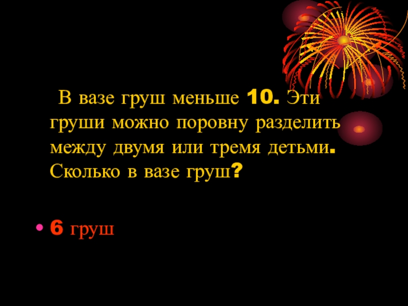 Слайд 25 В вазе груш меньше 10. Эти груши можно поровну