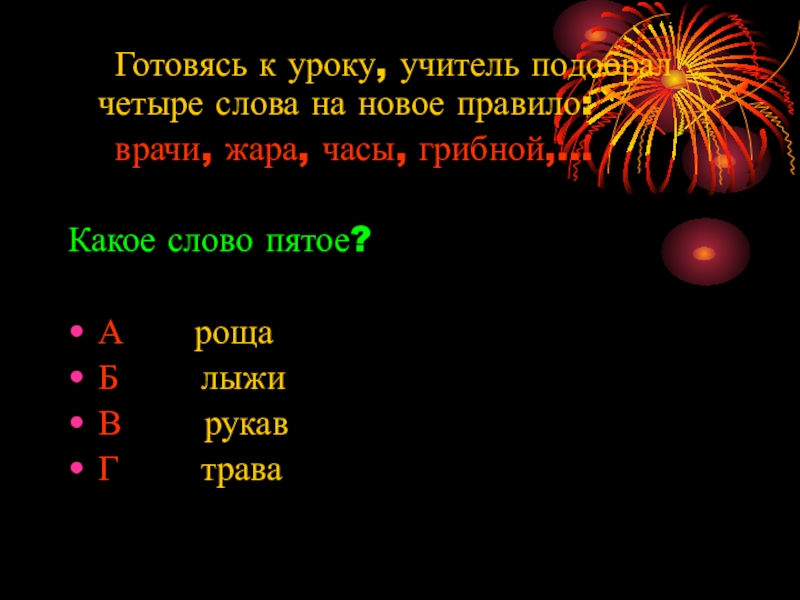 Слайд 22 Готовясь к уроку, учитель подобрал четыре слова на новое