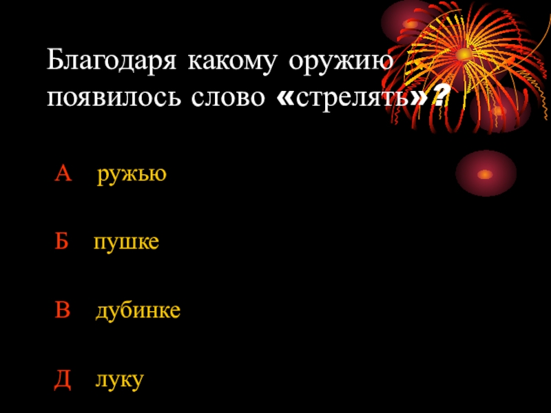 Слайд 6Благодаря какому оружию появилось слово «стрелять»?