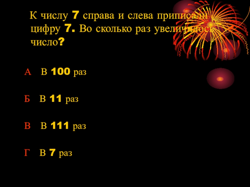 Слайд 9 К числу 7 справа и слева приписали цифру 7.