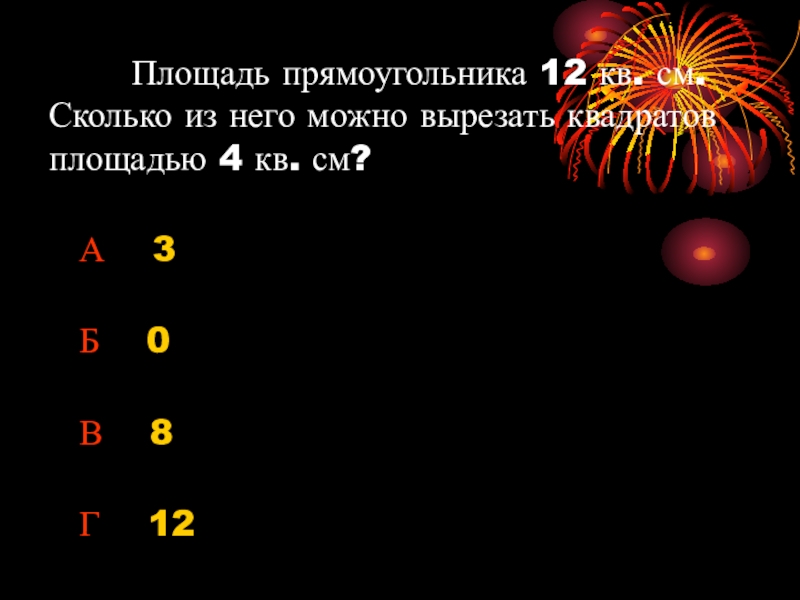 Слайд 8 Площадь прямоугольника 12 кв. см. Сколько из