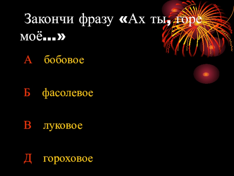 Слайд 3 Закончи фразу «Ах ты, горе моё…»