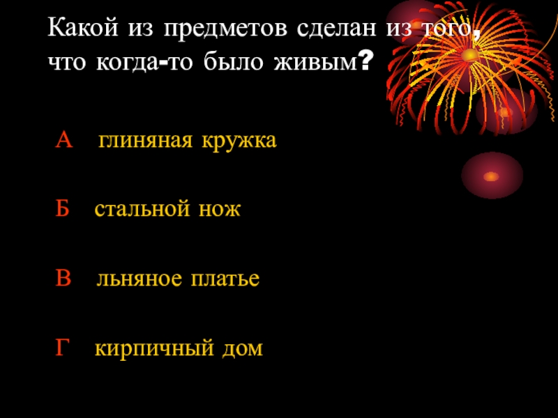 Слайд 14Какой из предметов сделан из того, что когда-то было живым?