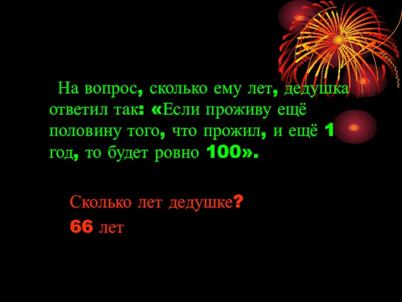 так: «Если проживу ещё половину того, что прожил, и ещё 1 год, то будет ровно 100».