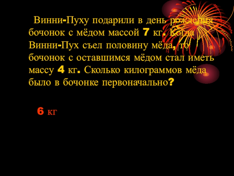 Слайд 24 Винни-Пуху подарили в день рождения бочонок с мёдом массой