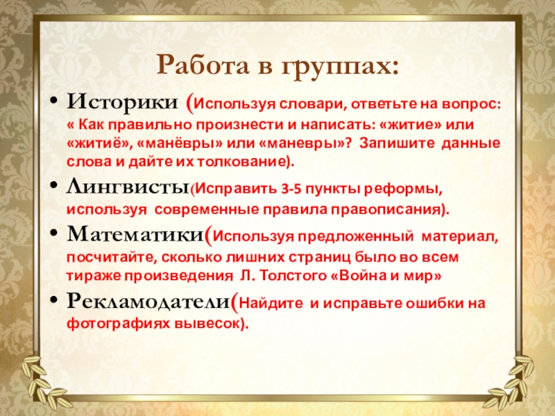 Работа в группах: