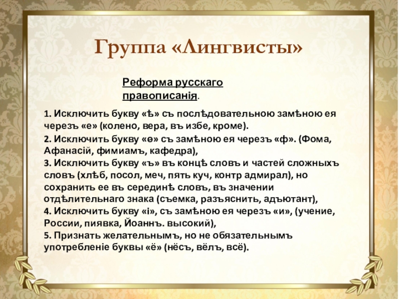 2. Исключить букву «ѳ» съ замѣною ея черезъ «ф». (Фома, Афанасій, фимиамъ, кафедра),