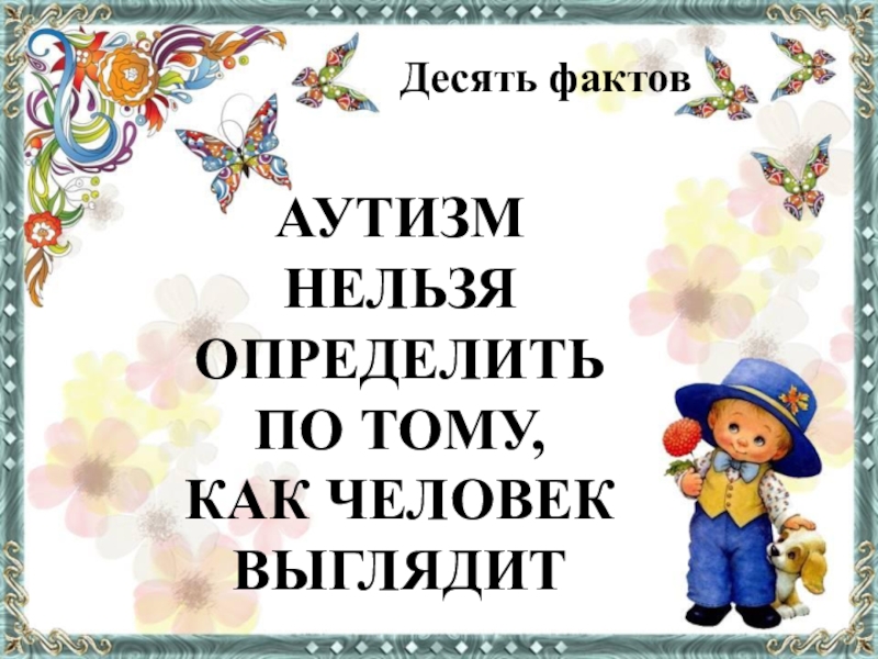 Десять фактов АУТИЗМ НЕЛЬЗЯ ОПРЕДЕЛИТЬ ПО ТОМУ, КАК ЧЕЛОВЕК ВЫГЛЯДИТ