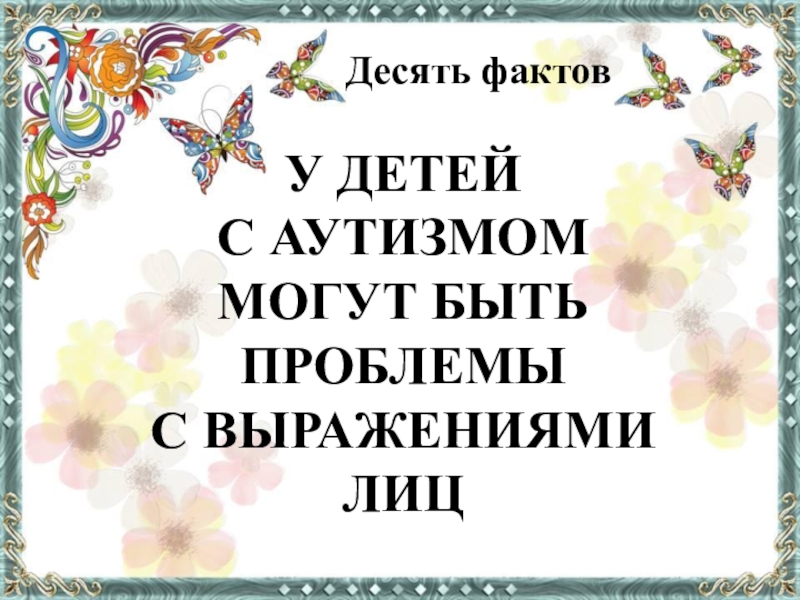Десять фактов У ДЕТЕЙ С АУТИЗМОМ МОГУТ БЫТЬ ПРОБЛЕМЫ С ВЫРАЖЕНИЯМИ ЛИЦ