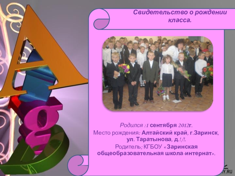 Свидетельство о рождении класса.