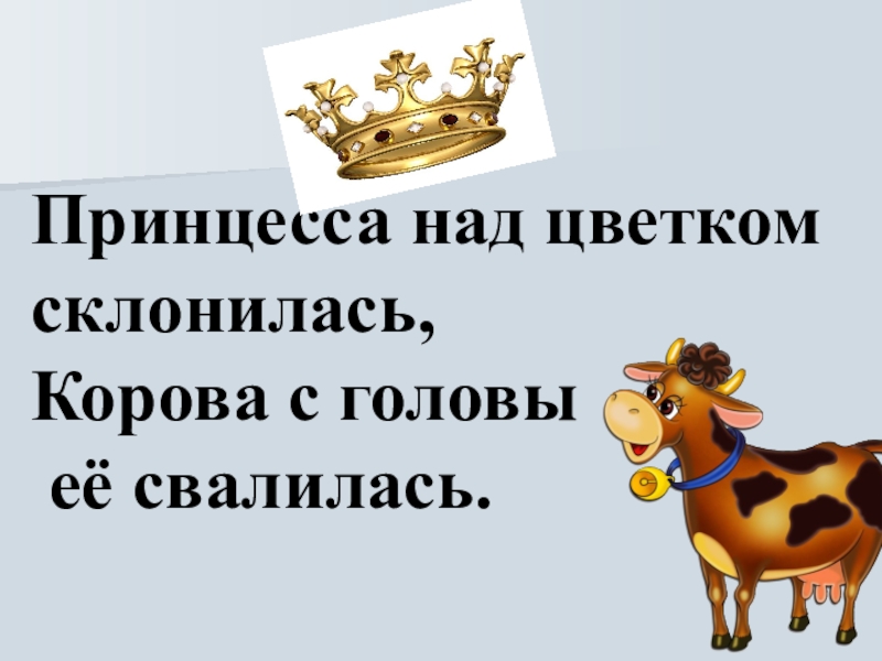 Слайд 3Принцесса над цветком склонилась, Корова с головы её свалилась.