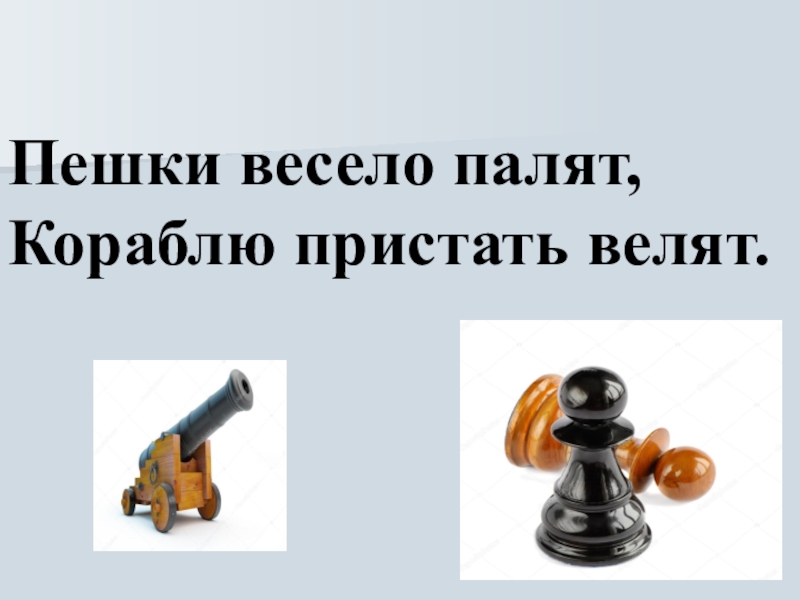 Слайд 4Пешки весело палят, Кораблю пристать велят.