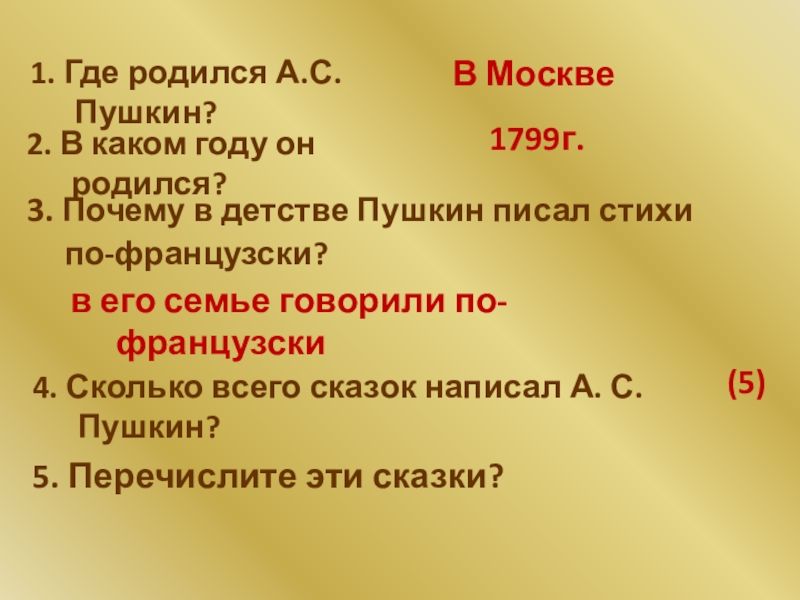 4. Сколько всего сказок написал А. С. Пушкин?