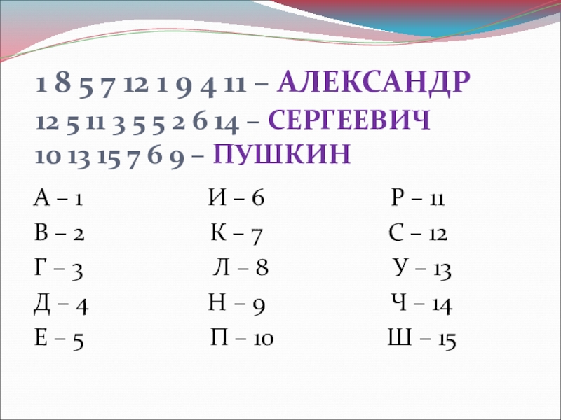 А – 1 И – 6 Р – 11