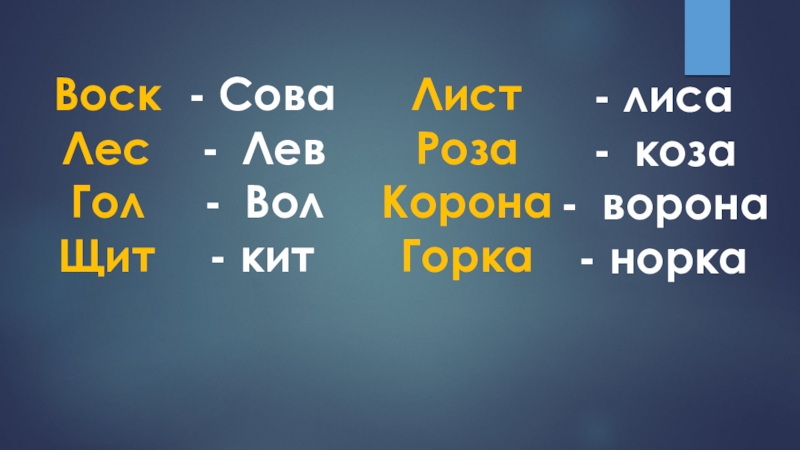 ВоскЛесГолЩитЛистРозаКоронаГорка- СоваЛевВол- кит- лисакозаворона- норка