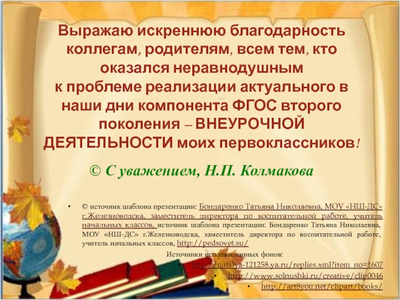 © источник шаблона презентации: Бондаренко Татьяна Николаевна, МОУ «НШ-ДС» г.Железноводска, заместитель директора по воспитательной работе, учитель начальных классов, источник шаблона презентации: Бондаренко Татьяна Николаевна, МОУ «НШ-ДС» г.Железноводска, заместитель директора по воспитательной работе, учитель начальных классов, http://pedsovet.su/