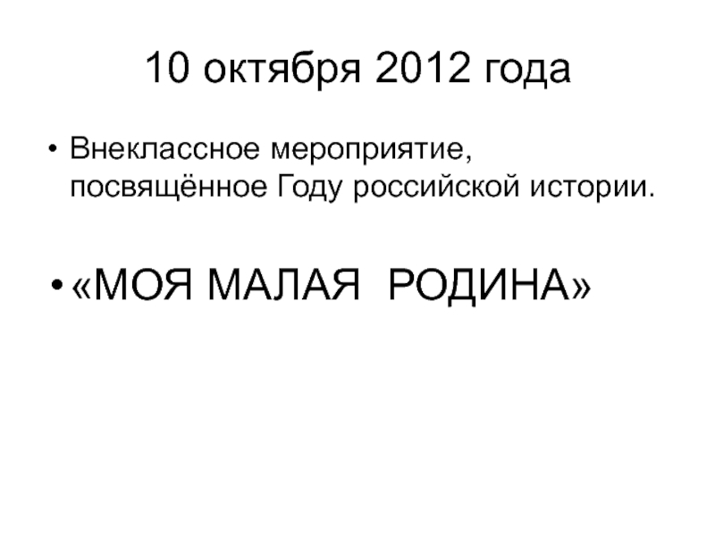 10 октября 2012 годаВнеклассное мероприятие, посвящённое Году российской истории.«МОЯ МАЛАЯ РОДИНА»