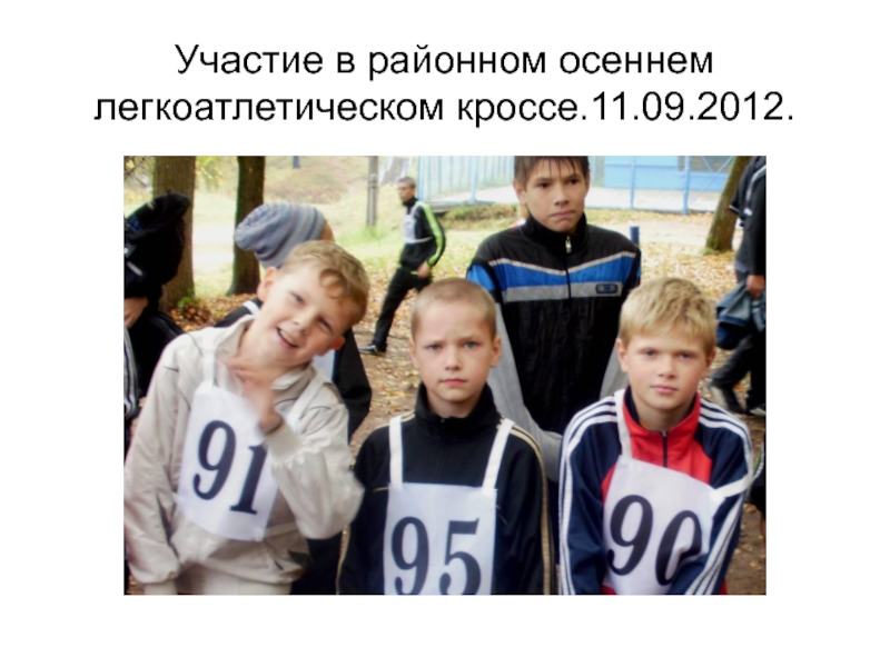 Слайд 18Участие в районном осеннем легкоатлетическом кроссе.11.09.2012.