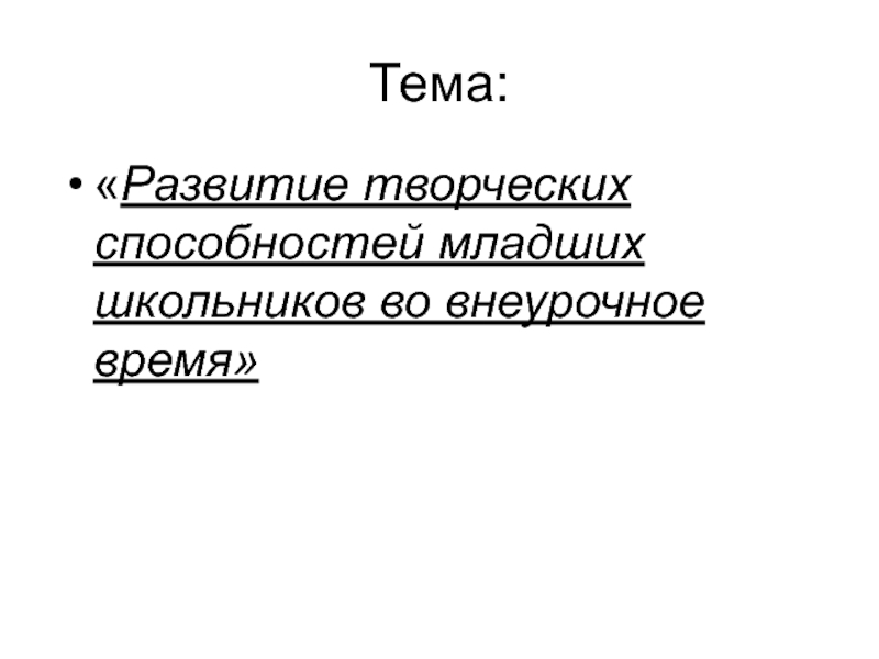 Тема:«Развитие творческих способностей младших школьников во внеурочное время»