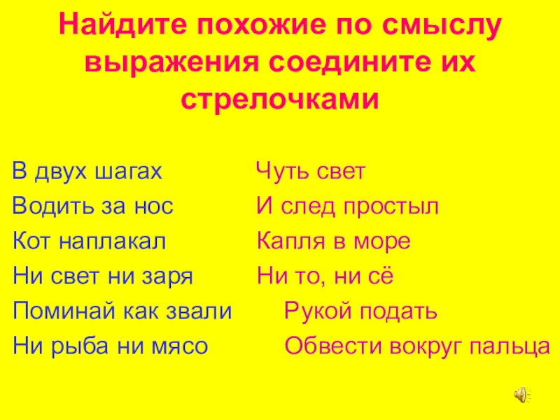 Слайд 23Найдите похожие по смыслу выражения соедините их стрелочками