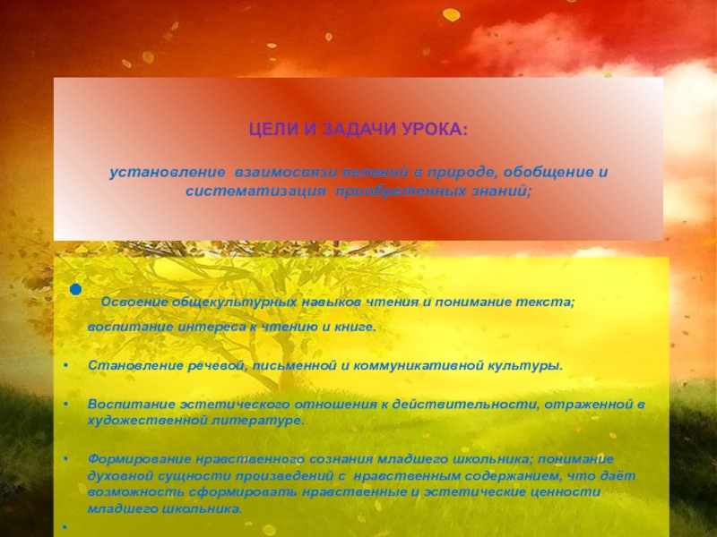 Формирование нравственного сознания младшего школьника; понимание духовной сущности произведений с нравственным содержанием, что даёт возможность сформировать нравственные и эстетические ценности младшего школьника.