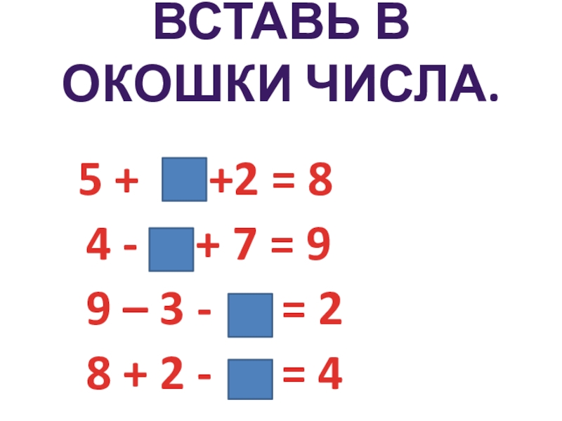 ВСТАВЬ В ОКОШКИ ЧИСЛА.    5 +   +2 = 8