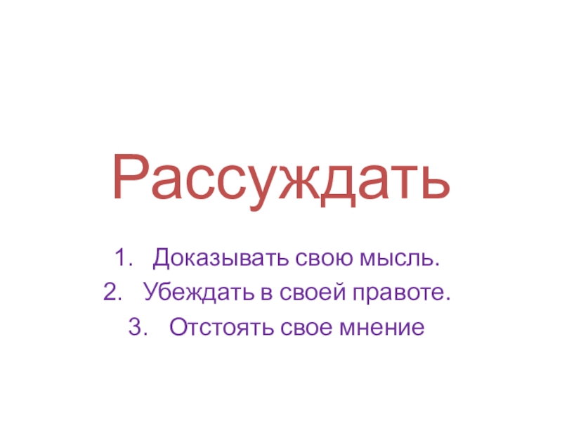 РассуждатьДоказывать свою мысль.Убеждать в своей правоте.Отстоять свое мнение