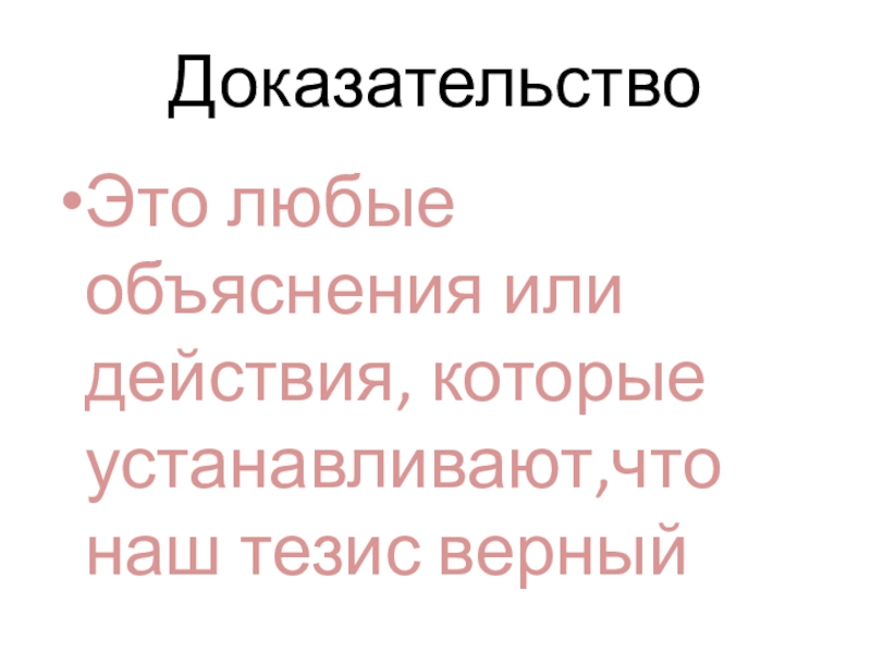 ДоказательствоЭто любые объяснения или действия, которые устанавливают,что наш тезис верный