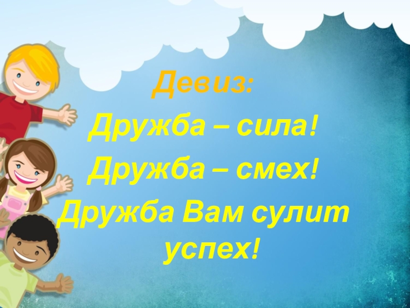 Девиз: Дружба – сила!Дружба – смех!Дружба Вам сулит успех!