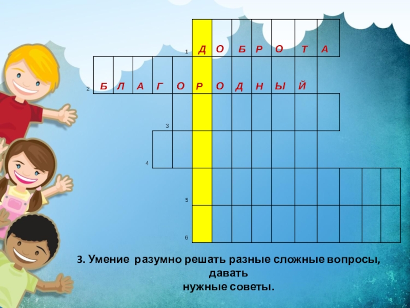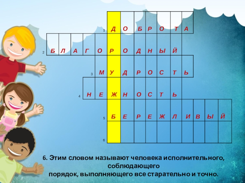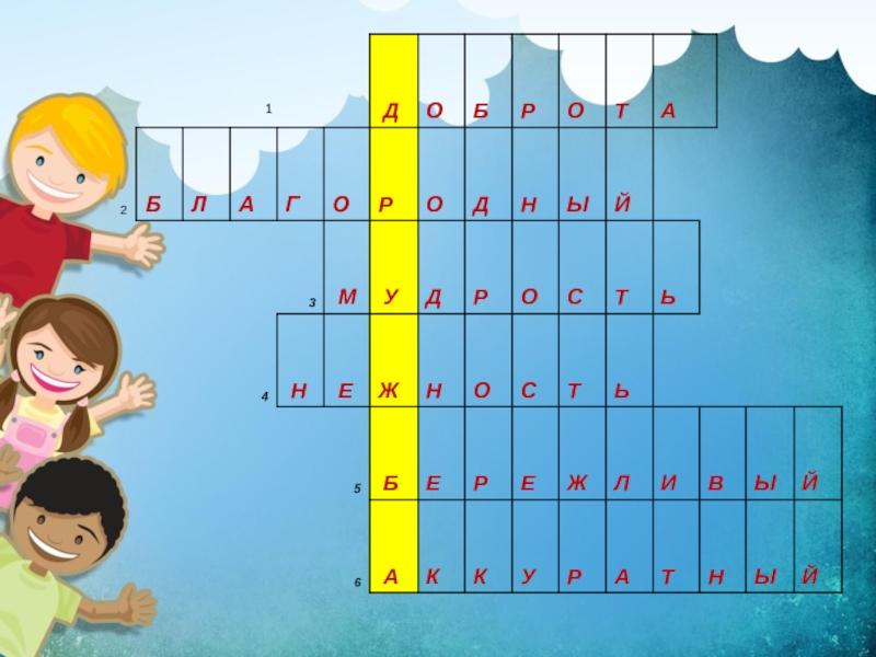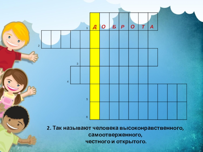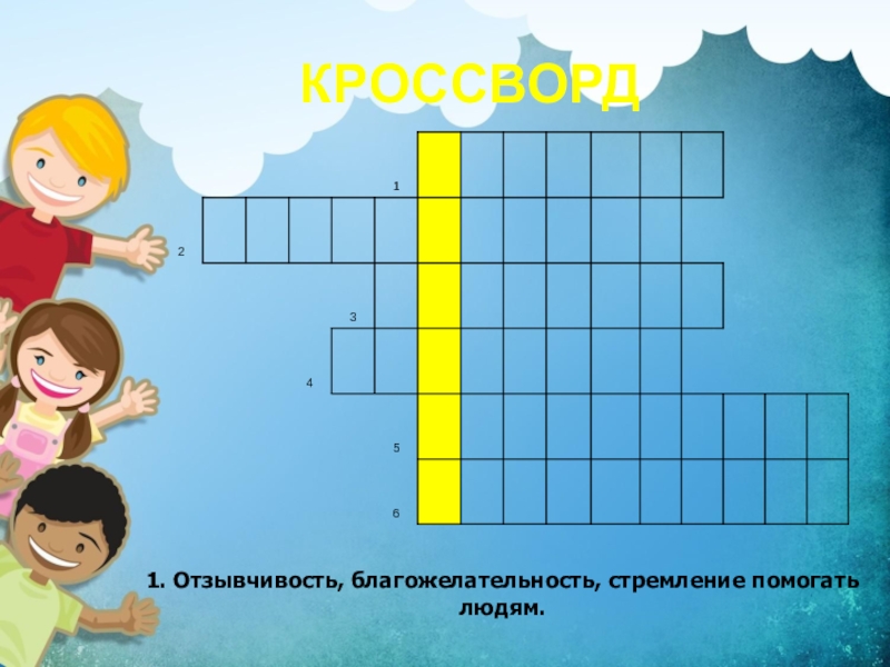 1. Отзывчивость, благожелательность, стремление помогать людям.КРОССВОРД