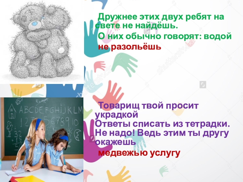 Товарищ твой просит украдкой  Ответы списать из тетрадки. Не надо! Ведь этим ты другу окажешь