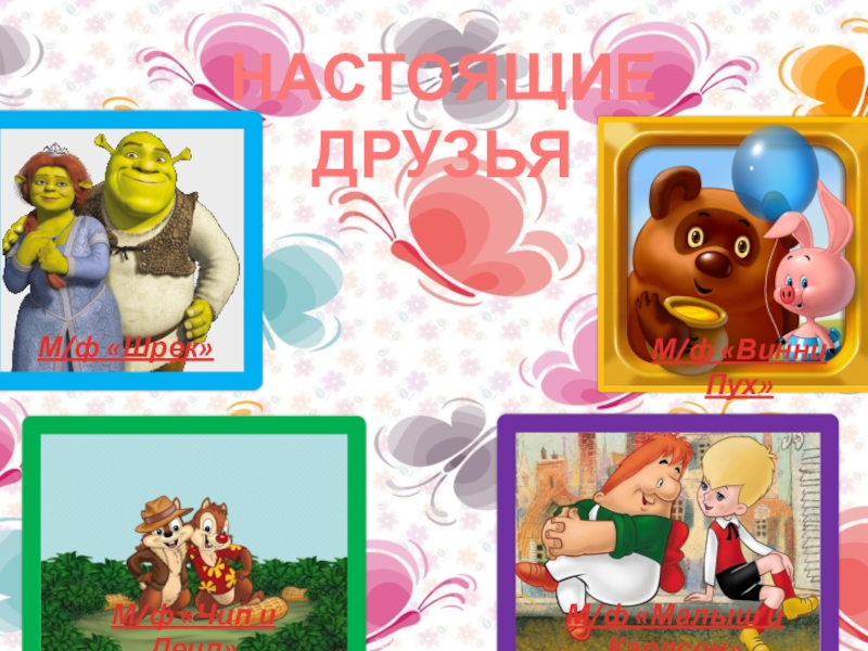 НАСТОЯЩИЕ ДРУЗЬЯ М/ф «Шрек»М/ф «Чип и Деил»М/ф «Винни Пух»М/ф «Малыш и Карлсон»