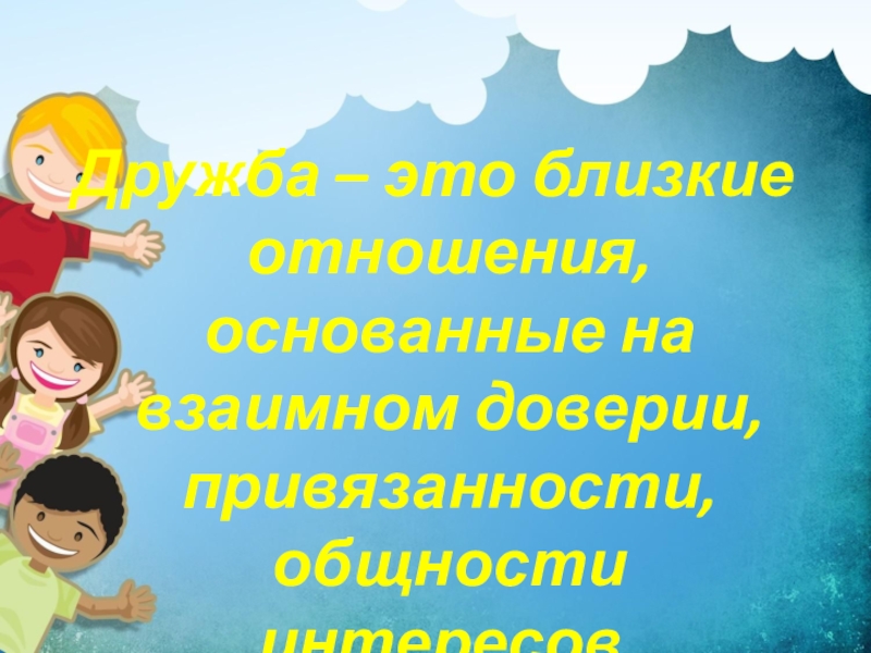 Дружба – это близкие отношения, основанные на взаимном доверии, привязанности, общности интересов.